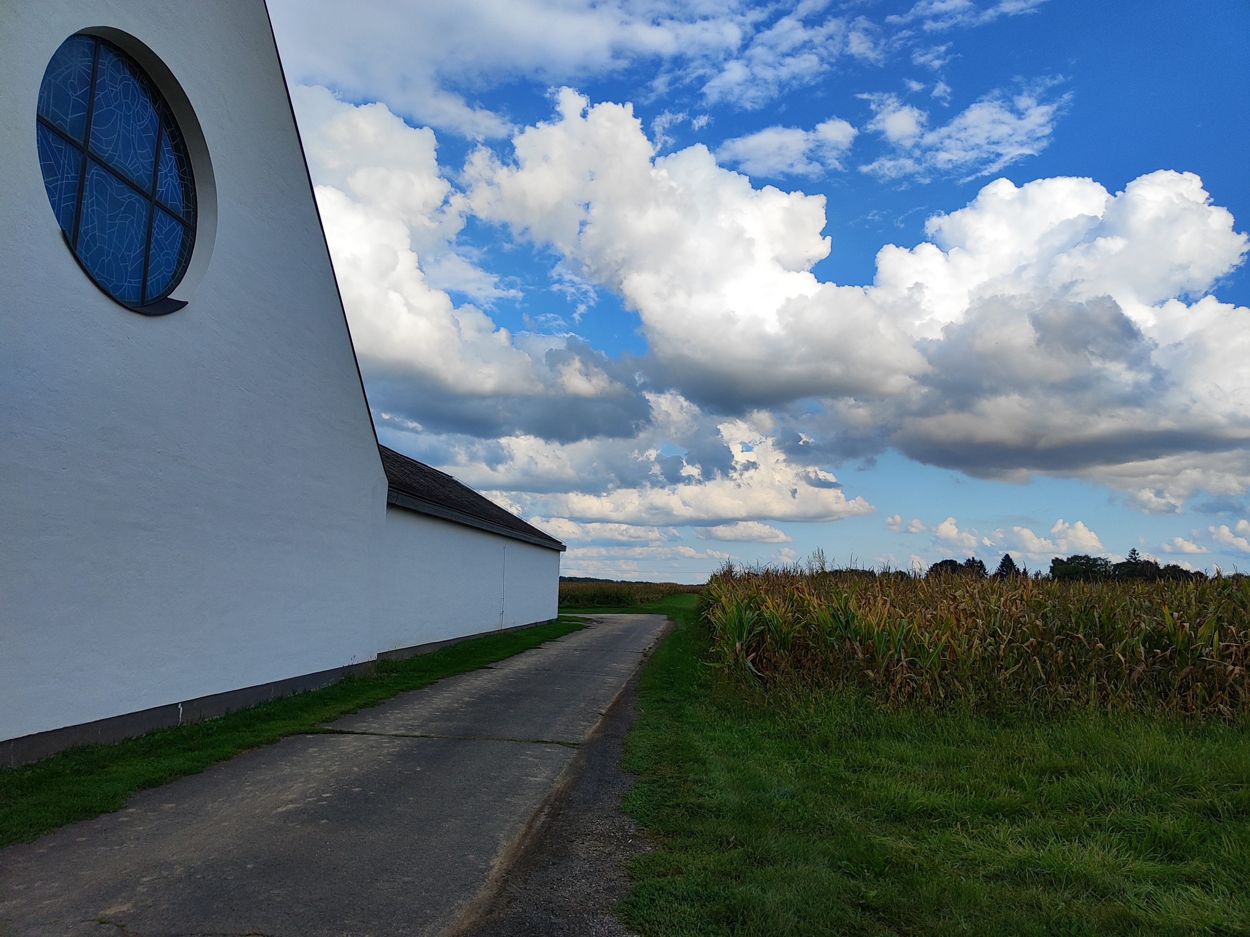 Wir machen uns auf den Rückweg. Inzwischen ist die Sonne, die für kurze Zeit zu sehen war, sehr rasch durch dunkelgraue Regenwolken verdrängt worden. Es regnet und die verlassenen Bänke und Getränkestandln zeugen davon, dass dem Regenguss auch das Murecker Straßenfest zum Opfer gefallen ist.