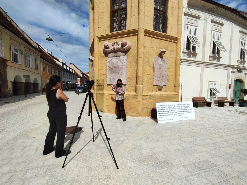 Am Schluss unseres Gesprächs hier am Radkersburger Hauptplatz betont David Kranzelbinder noch die Wichtigkeit der Mehrsprachigkeit als Normalität und des Zusammenlebens von Slowen:innen und Österreicher:innen für die Region und die Steiermark.