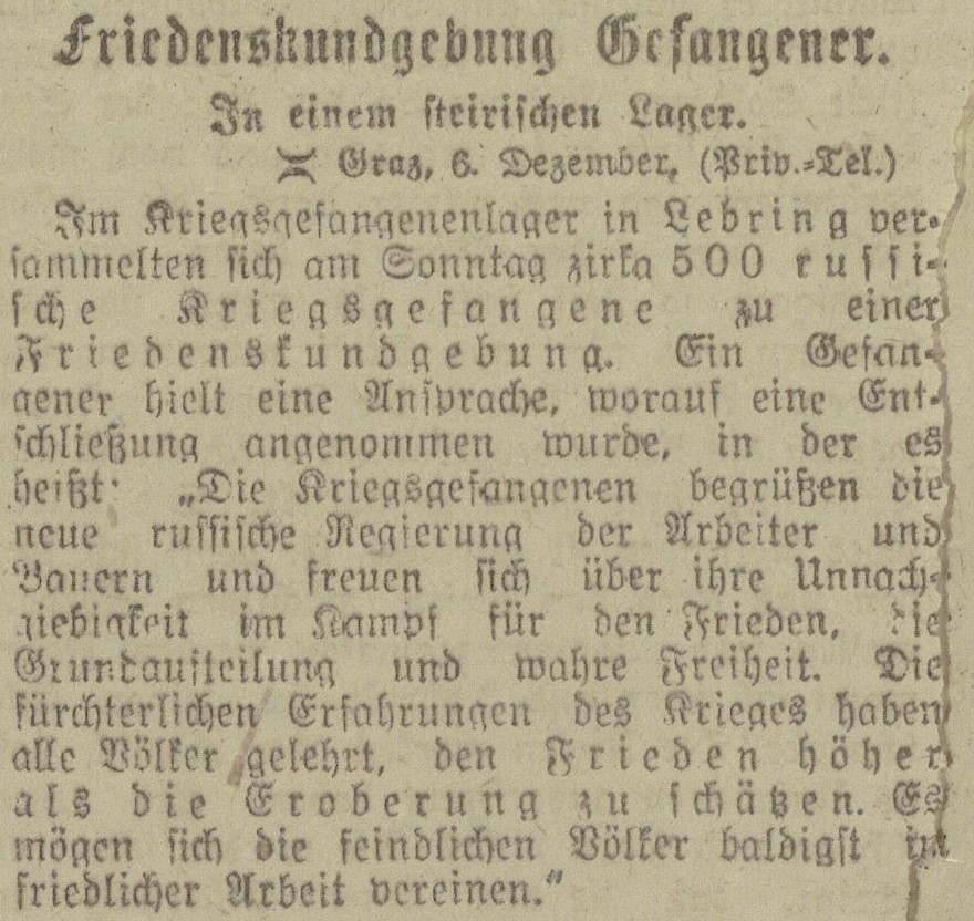 Nach der russischen Oktoberrevolution demonstrierten rund 500 russische Kriegsgefangene in Lebring für den Frieden.[6]