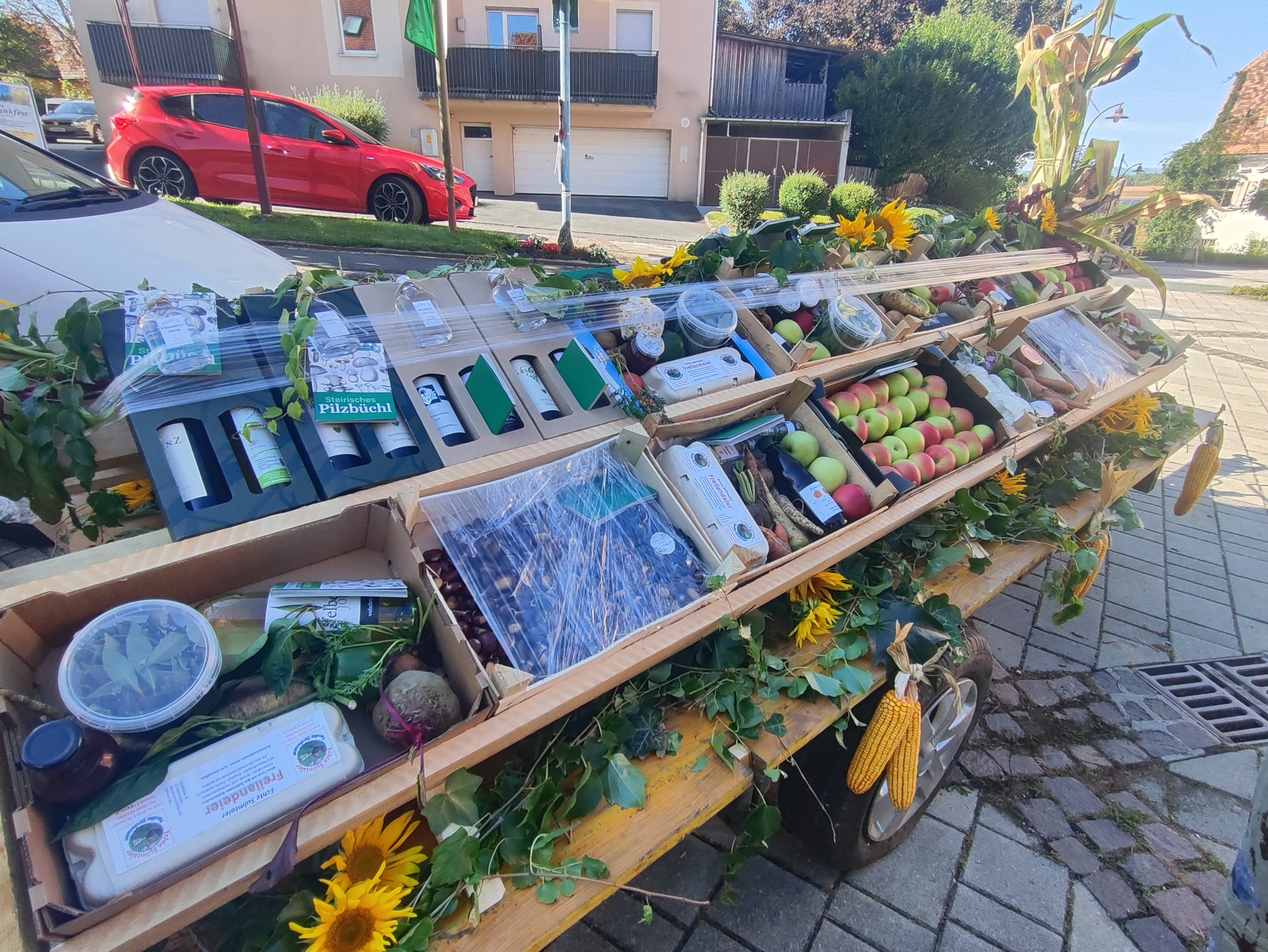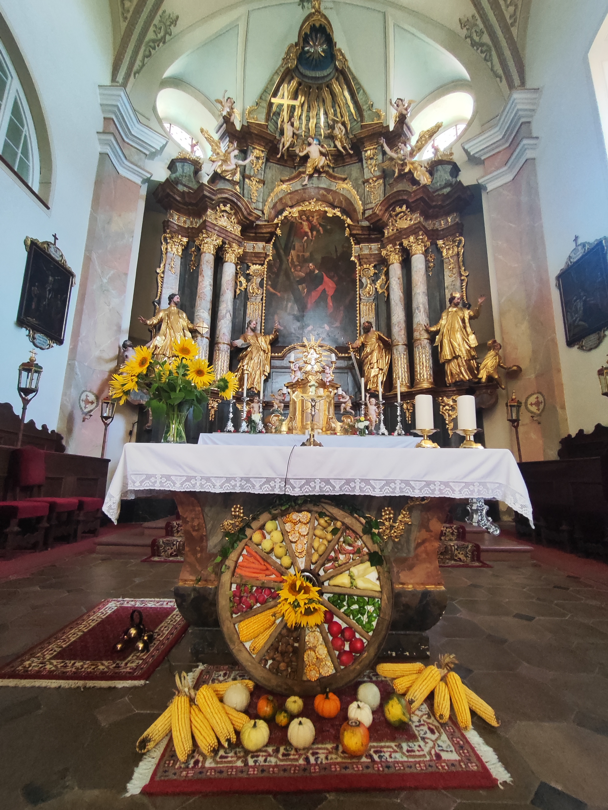Für den kommenden Tag haben wir uns mit dem Obmann des örtlichen Kameradschaftsbundes, Helmuth Korp, zum Gespräch verabredet, der daneben auch ÖVP-Gemeinderat ist. Wir treffen ihn beim Erntedankfest, das hier am Kirchplatz von St. Andrä neben dem Kriegerdenkmal in größerem Rahmen stattfindet. Für mich, der vor rund vier Jahrzehnten wegzog, ist es irgendwie eine Reise in die Vergangenheit. Beim geschmückten Kirchenaltar denke ich an meine eigene Kindheit zurück, als ich hier sogar eine Zeitlang Ministrant war. Am Festplatz sind viele in Uniform anzutreffen, seien es jene, die sich bei der Freiwilligen Feuerwehr oder beim Kameradschaftsbund engagieren. Bei der Versteigerung der landwirtschaftlichen Produkte des Erntedankwagens kommen mir viele Namen der Bieter:innen bekannt vor.