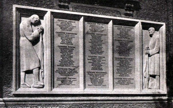 Das erste Monument in kleinerem Umfang wurde 1923 nach Plänen des Bildhauers Franz Josef Unterholzer (1880–1952) errichtet und mit den Namen von 238 Gefallenen des Ersten Weltkriegs versehen.[11]